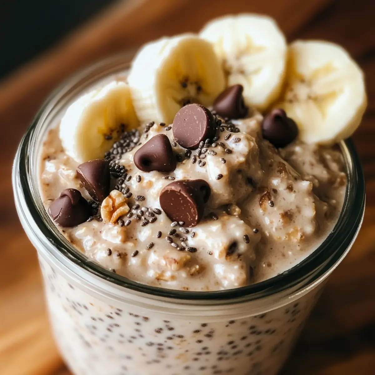Kurz vor dem Servieren rühre die Overnight Oats gut um und füge nach Belieben frische Früchte oder einen Löffel Joghurt hinzu. Diese Toppings bringen zusätzliche Vitamine und Cremigkeit, die deine Schokoladenkekse-Overnight-Oats noch köstlicher machen. Jetzt ist es an der Zeit, einfach zu genießen!