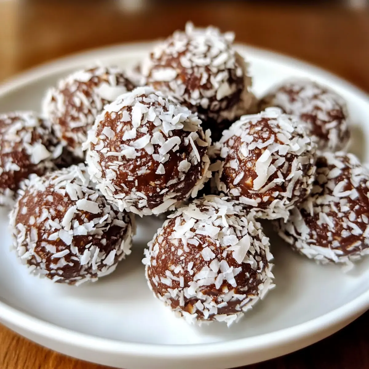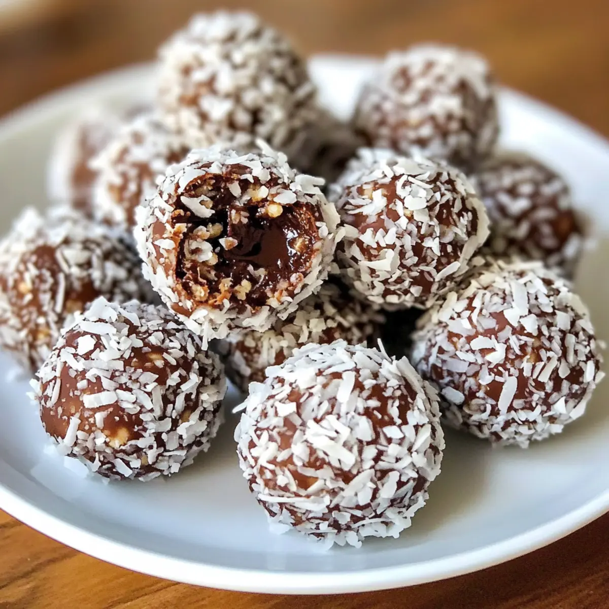 - Rolle die geformten Bällchen in geriebener Kokosnuss, bis sie vollständig bedeckt sind.