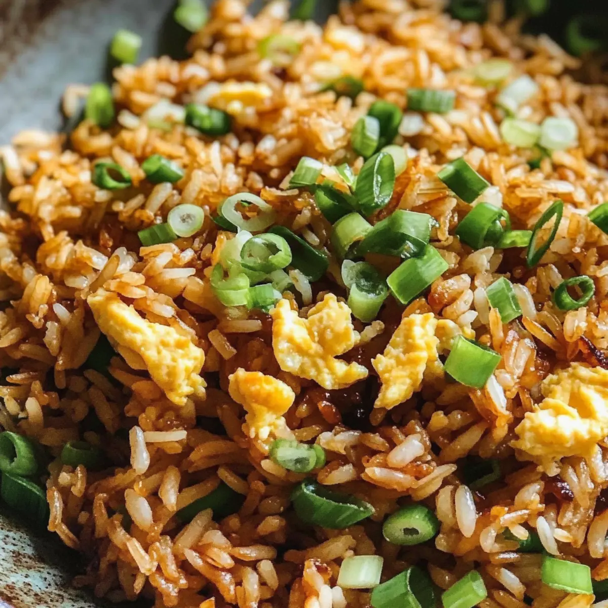 Perfektes Meal Prep: Ideal für die nächste Mahlzeit, denn Reste lassen sich problemlos im Kühlschrank aufbewahren und erneut aufwärmen. Überlege, fein gewürfeltes Gemüse wie Erbsen oder Paprika hinzuzufügen oder etwas gegrilltes Hähnchen für eine herzhaftigere Variante. Wenn du mehr darüber erfahren möchtest, wie du zusätzliches Gemüse integrieren kannst, schau dir diesen Artikel zu Gemüsesorten für gebratenen Reis an!