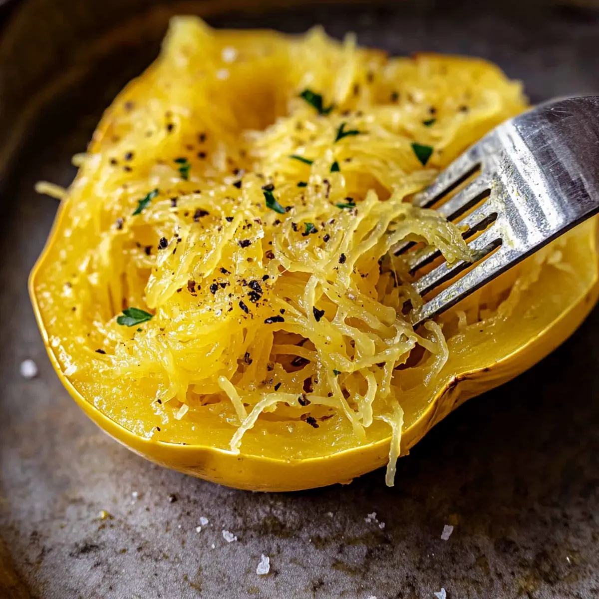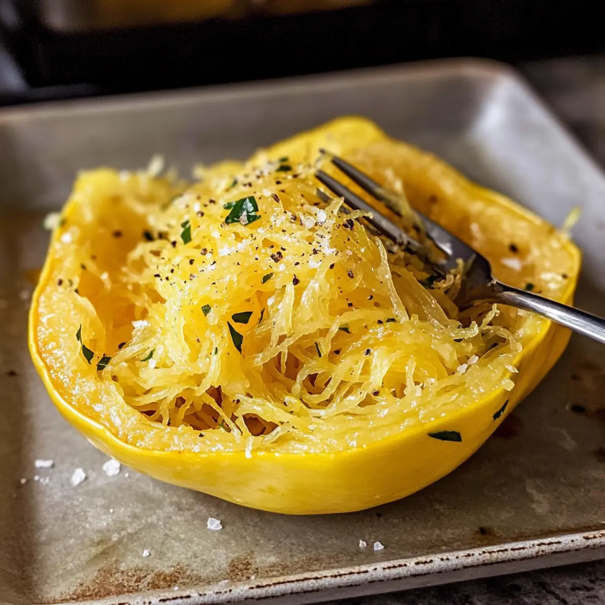 Nach dem Backen dreht ihr die Kürbishälften um, sodass die Schnittfläche nach oben zeigt. Nehmt eine Gabel und zieht das Fruchtfleisch in feine Stränge, die wie Pasta aussehen. Serviert ihn sofort und genießt die gesunde, köstliche Alternative in vollen Zügen!