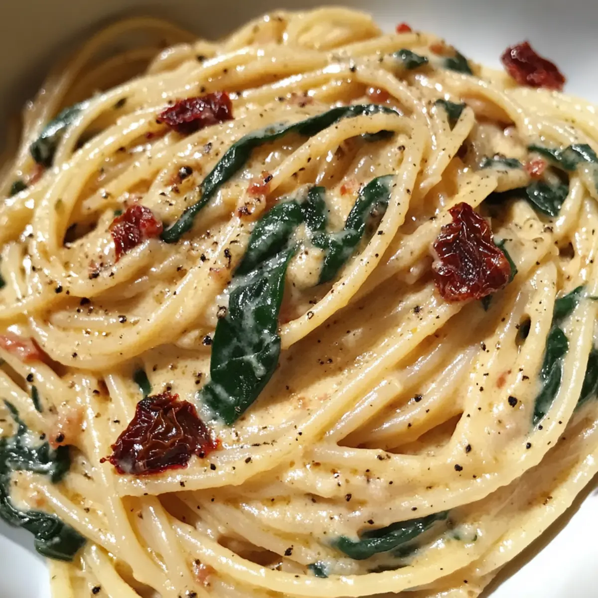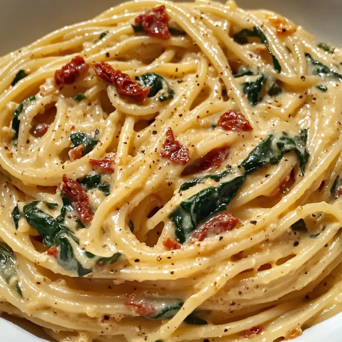 Cremige Spaghetti und Spinat mit Tomatensauce
