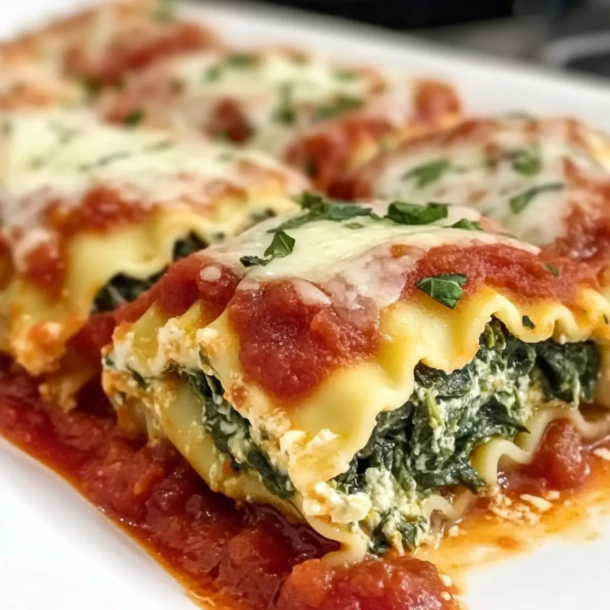 Einfachheit: Diese Spinat Lasagne Rollen-Röllchen sind schnell zubereitet und benötigen nur grundlegende Kochfähigkeiten. Herzhafter Geschmack: Die cremige Füllung aus Spinat und Käse harmoniert perfekt mit der fruchtigen Tomatensauce. Familienfreundlich: Ein Gericht, das sowohl Vegetarier als auch Fleischliebhaber erfreut – der perfekte Kompromiss für das Abendessen. Vielfältige Möglichkeiten: Experimentiere mit zusätzlichen Zutaten wie schwarzen Oliven oder Artischockenherzen, um deinem Gericht eine persönliche Note zu verleihen. Ob als schnelles Wochentagsessen oder für besondere Anlässe, diese Röllchen hinterlassen immer einen bleibenden Eindruck. Du könntest sie auch mit einem frischen grünen Salat oder etwas Gebackenes Knuspriges servieren – ein wahrer Genuss für alle!