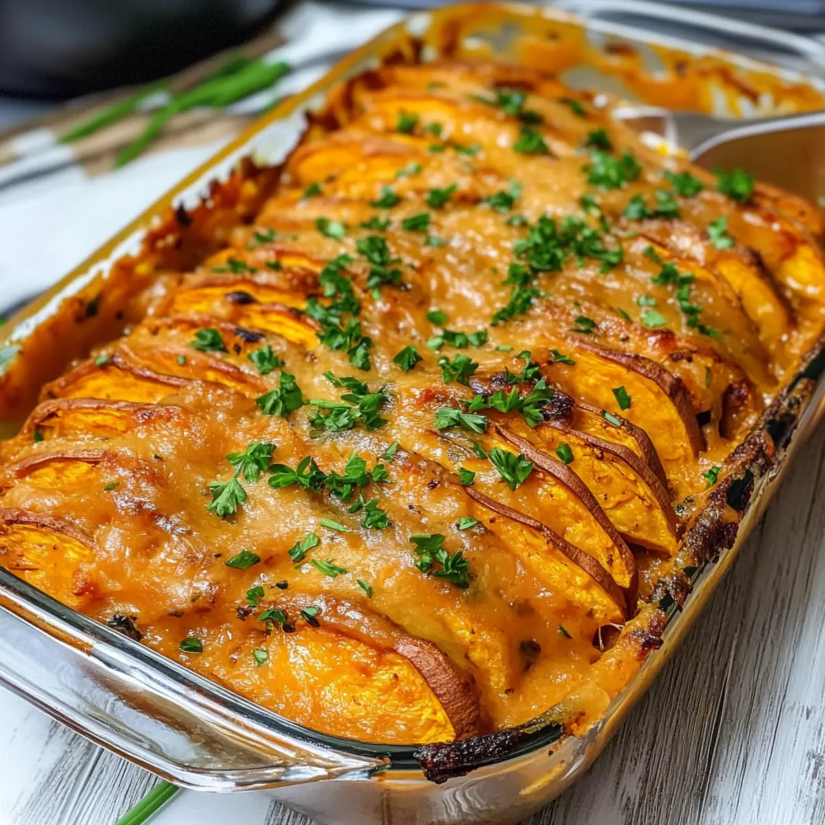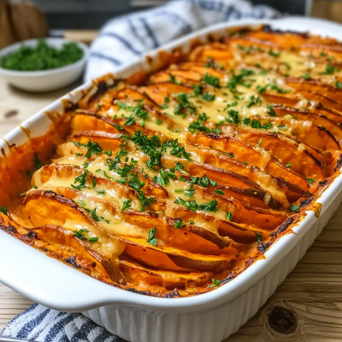 - Verwendung von frischen Kräutern: Frische Petersilie und Schnittlauch sind nicht nur eine dekorative Garnitur, sondern heben auch den Geschmack deines Süßkartoffelauflaufs an.