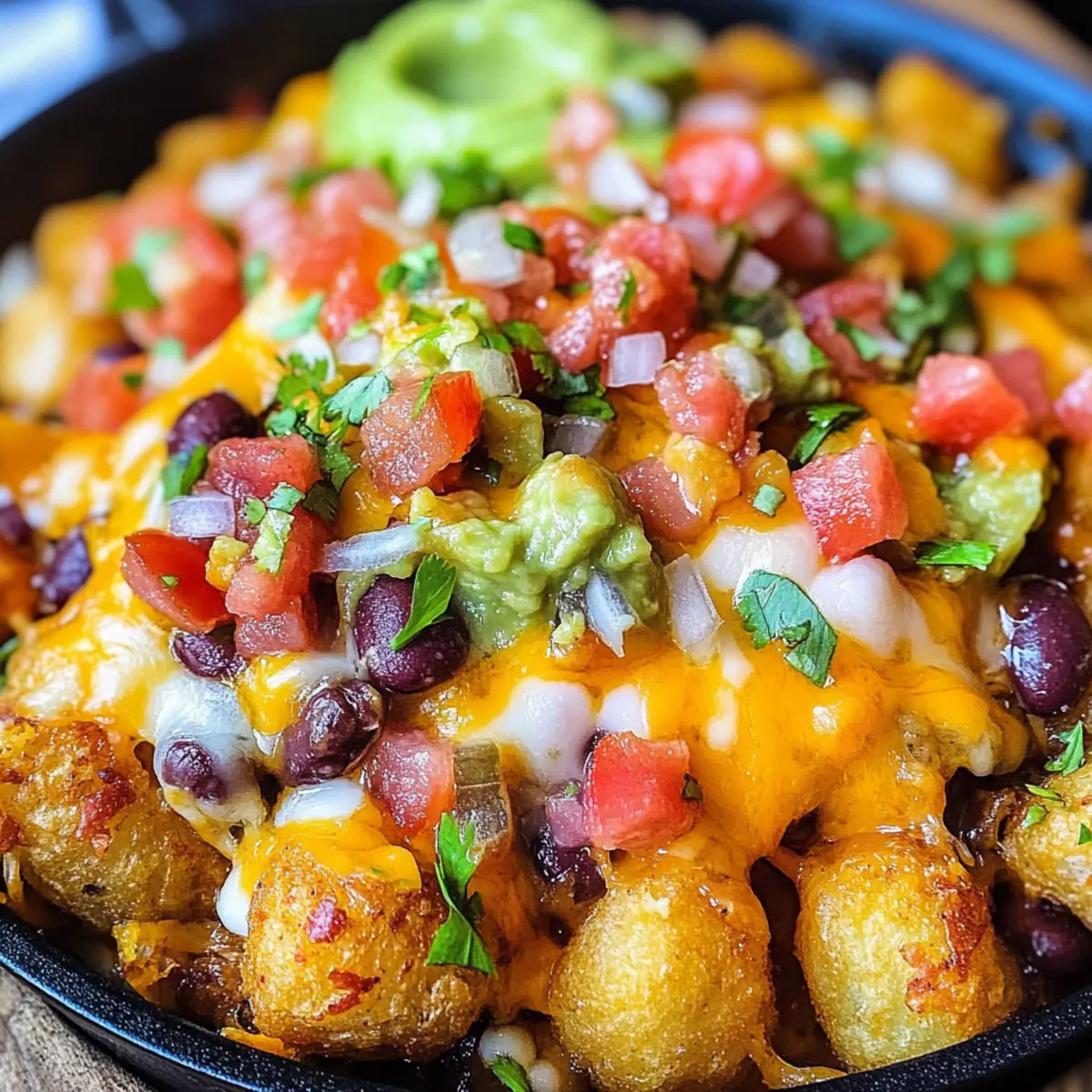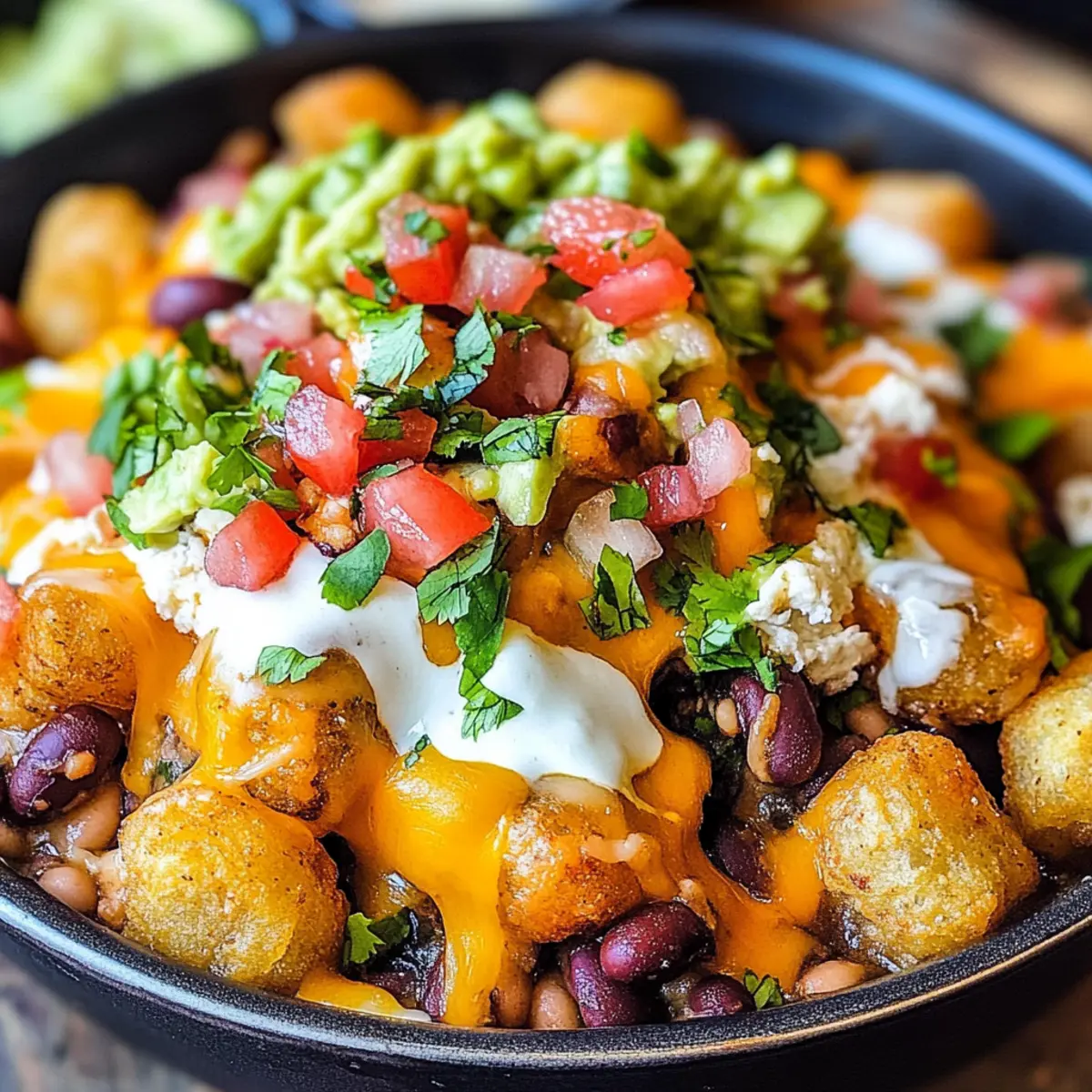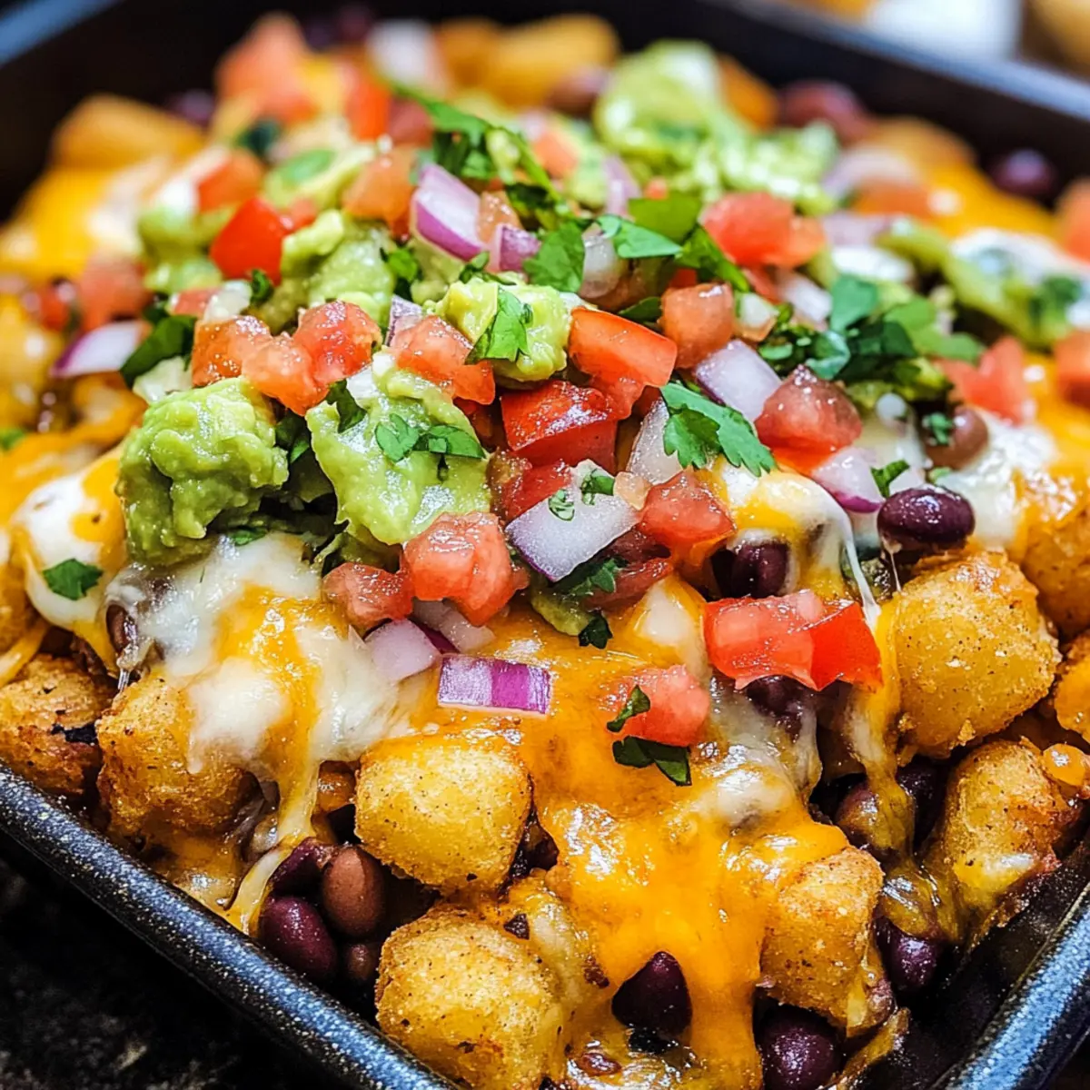 Perfekte Textur: Mit knusprigen Tater Tots und einer warmen Käsekruste ist jeder Biss ein Genuss – das macht die Veggie Totchos zu einem echten Hit!