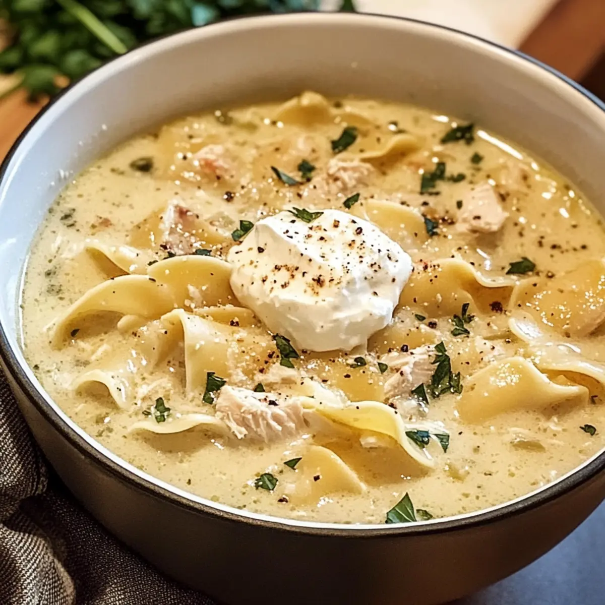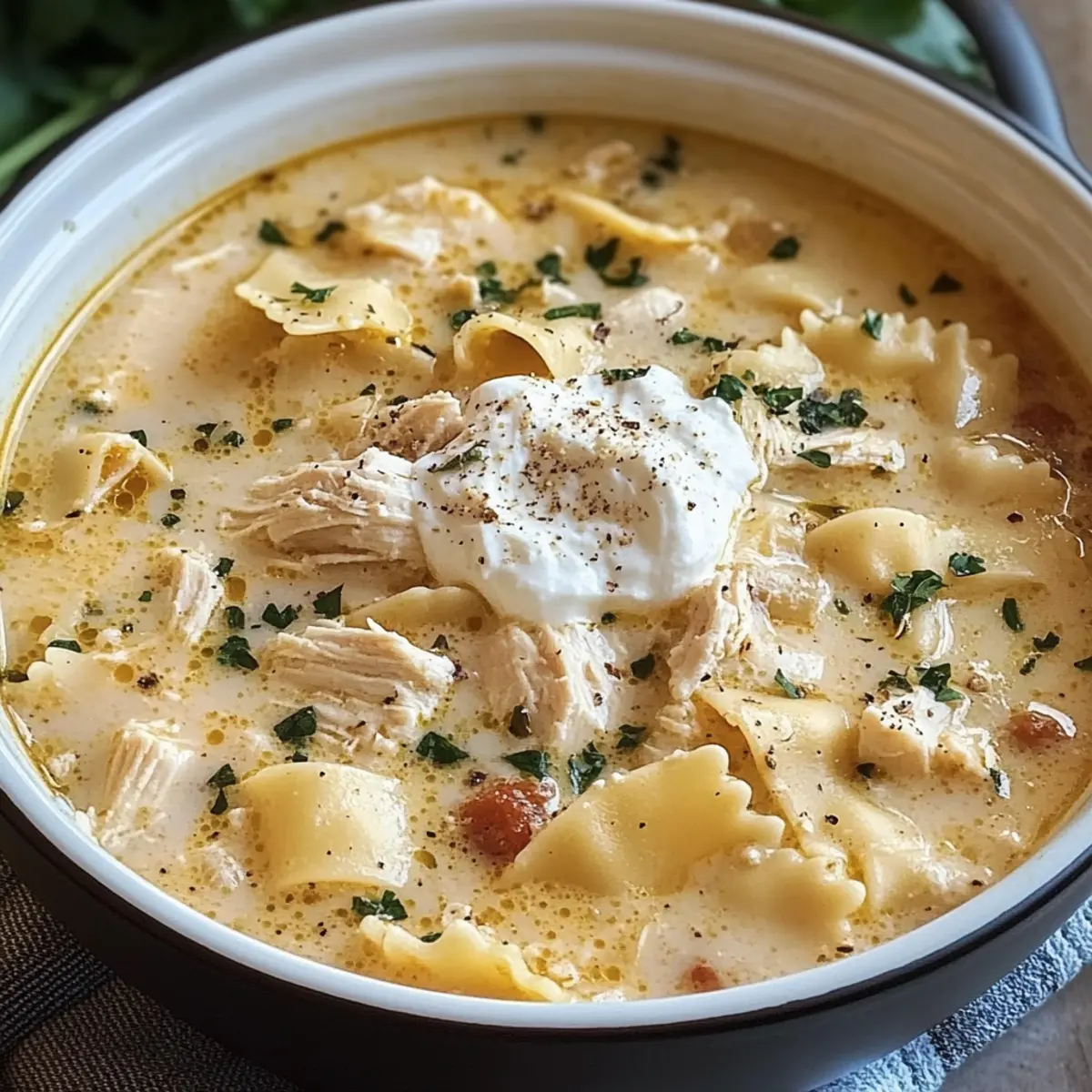 Eines Abends, als der Duft von frisch gekochter Lasagne durch meine Küche zog, kam mir die Idee, diesen Klassiker in eine wärmende Suppe zu verwandeln. Die weiße Hühnchen Lasagne Suppe kombiniert zartes Hühnchen, herzhaftes Gemüse und cremige Käse für eine Mahlzeit, die nur 40 Minuten Ihrer Zeit in Anspruch nimmt. Perfekt für die geschäftigen Wochentage, ist dieses Rezept nicht nur schnell zuzubereiten, sondern auch ein Erlebnis für die ganze Familie. Es verspricht sowohl am Tisch als auch in den folgenden Tagen als köstliche Reste zu glänzen. Wer könnte da widerstehen? Lassen Sie uns gemeinsam dieses cremige, wohltuende Gericht entdecken und die Herzenswärme genießen, die es mit sich bringt.