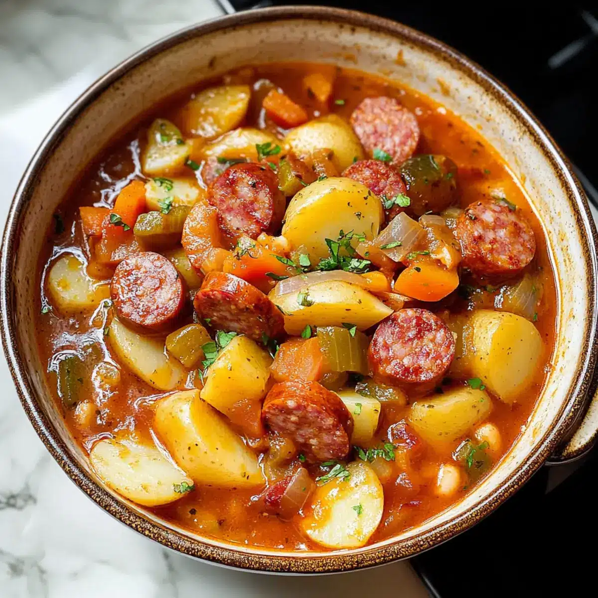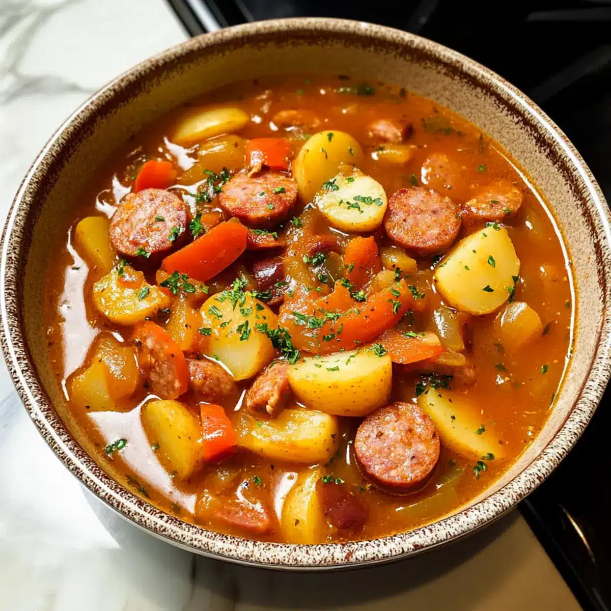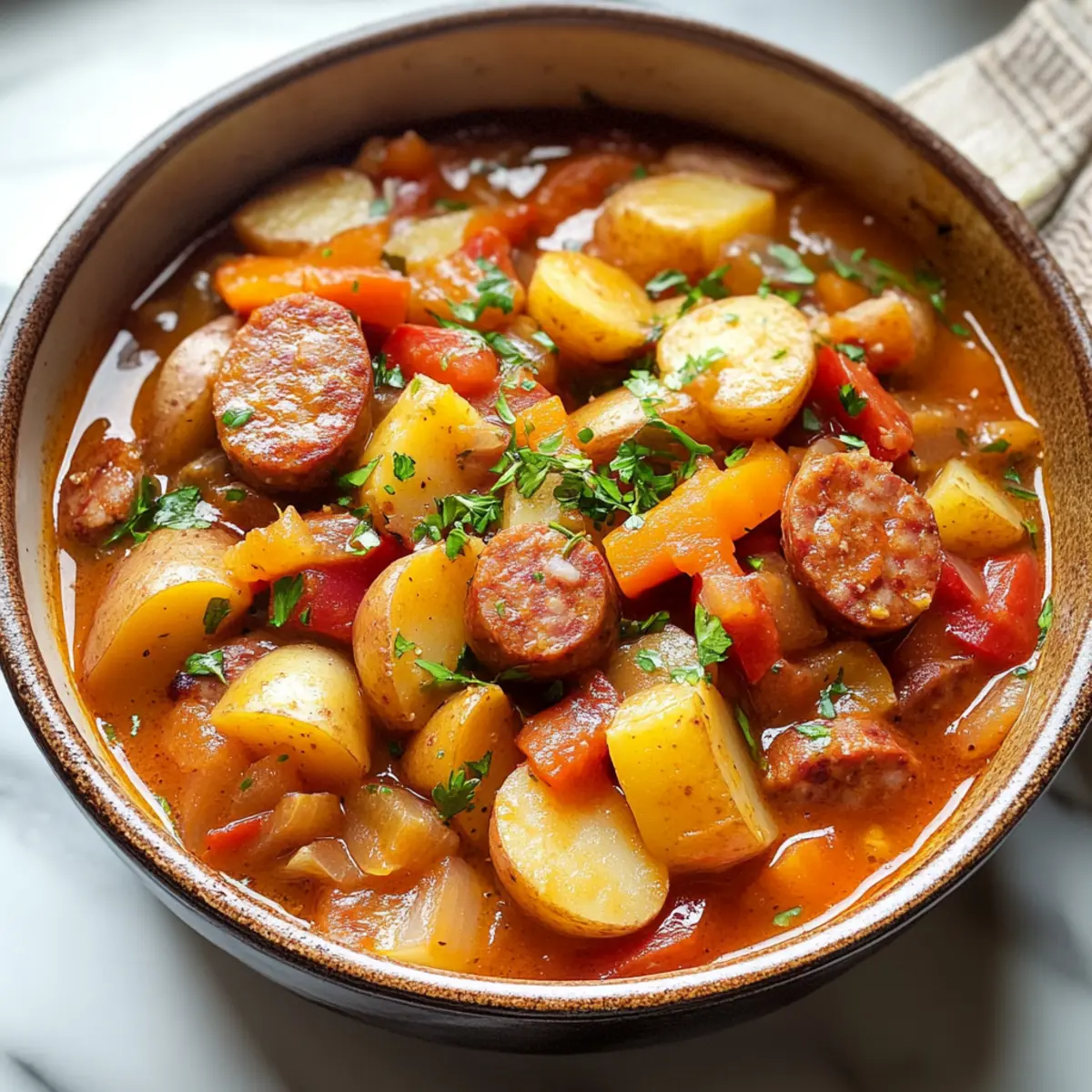 Veggie-Power: Mache den Eintopf ganz pflanzlich, indem du die Wurst durch deinen Lieblingsgemüse-Wechsel wie Tofu oder Seitan ersetzt. So wird es für alle, die kein Fleisch essen, zur großartigen Option!