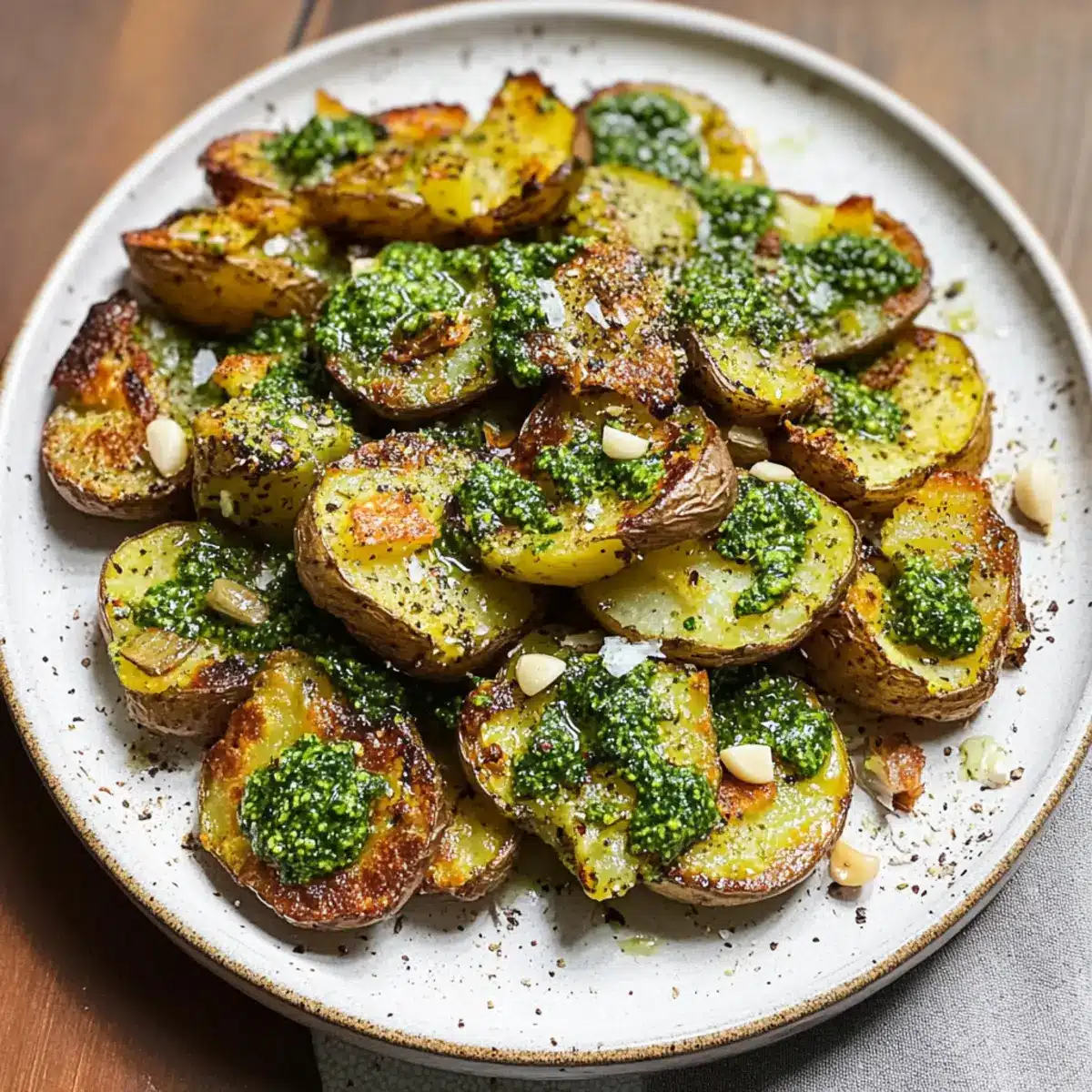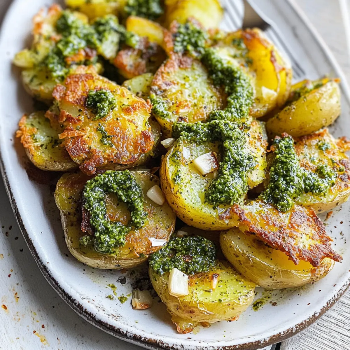 Zerdrückte Kartoffeln mit köstlichem Knoblauchpesto
