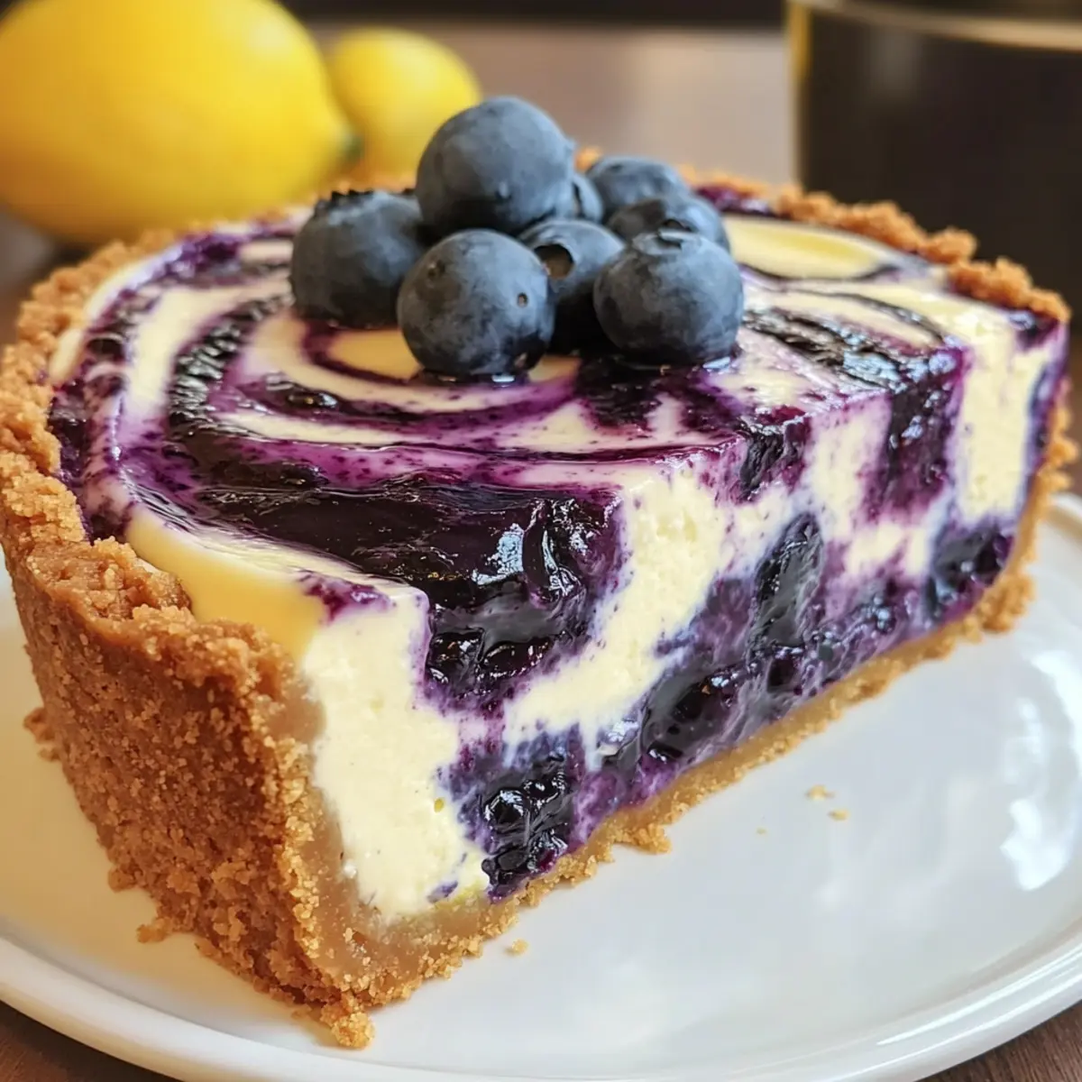 Frische Aromen: Der Zitronenblau-Borbeere-Käsekuchen vereint die spritzige Frische von Zitrone mit der süßen Saftigkeit von Heidelbeeren, was ihn zu einem Geschmackerlebnis macht, das begeistert.
