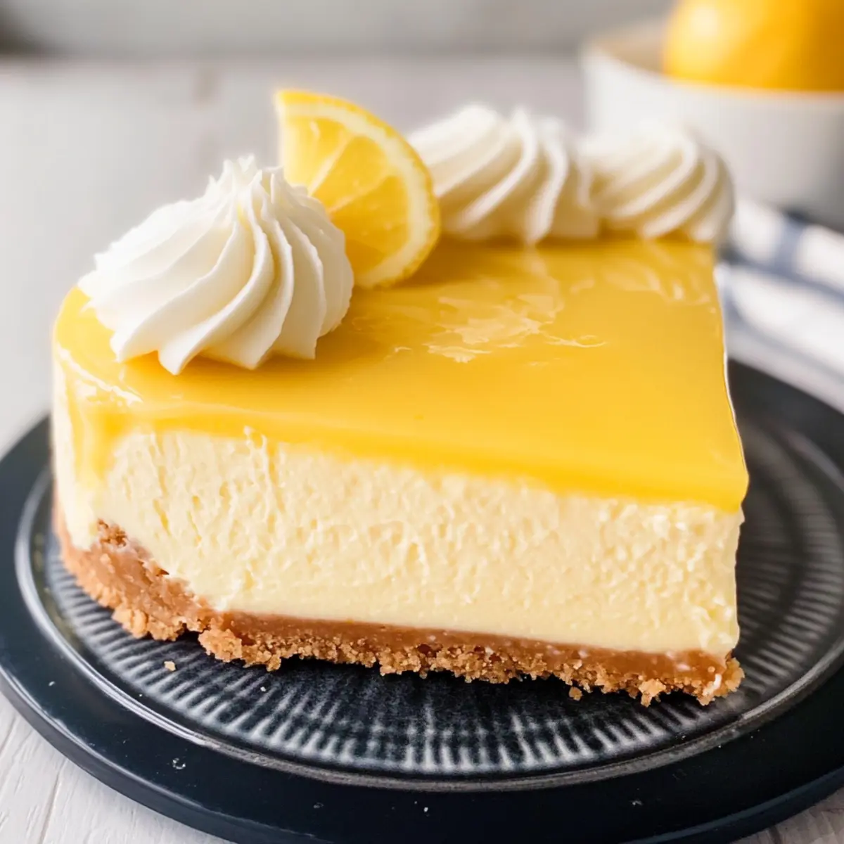 Nachdem die Zitronencreme abgekühlt ist, verteile sie gleichmäßig über den Käsekuchen. Zur Dekoration kannst du etwas Schlagsahne und Zitronenscheiben hinzufügen. Schneide den Zitronencreme-Käsekuchen in Portionen und serviere ihn gut gekühlt.